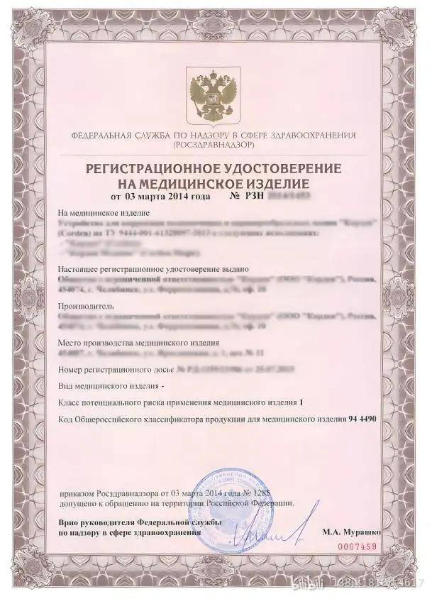 俄罗斯RZN注册流程(附证书样本)