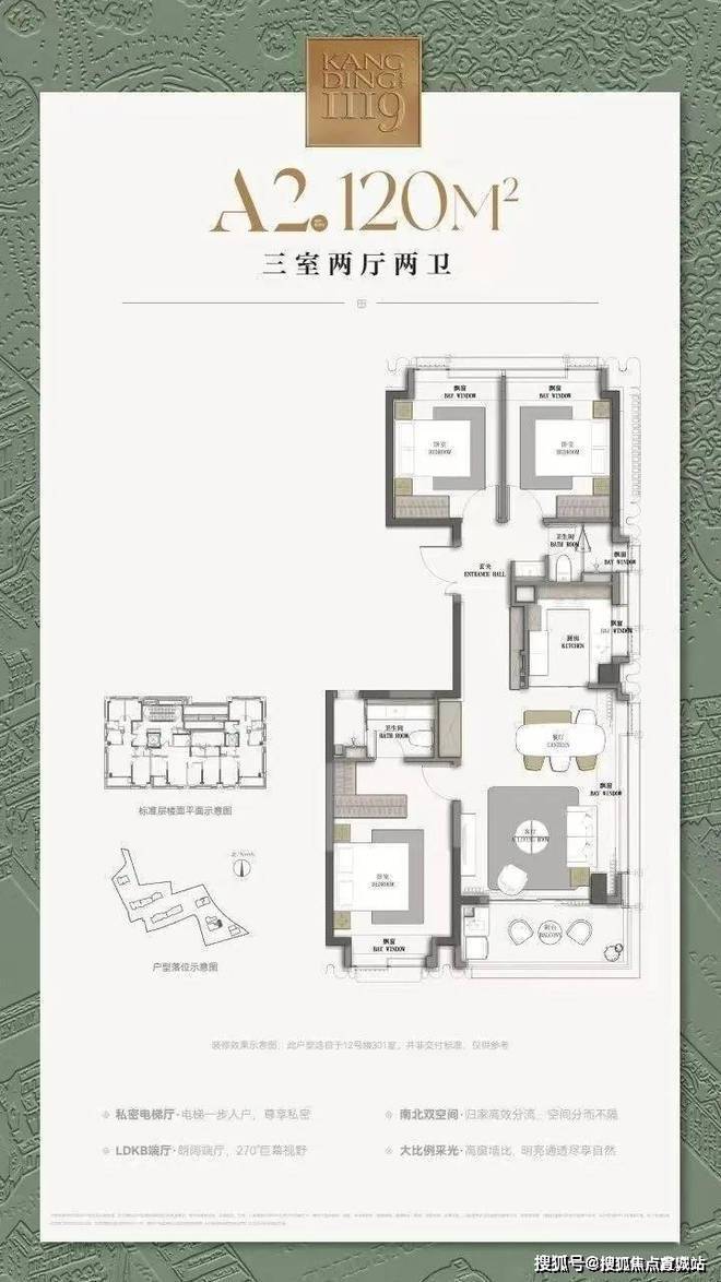 :为建面约 120-240㎡的三至四房,全社区一梯一户设计,得房率超 80%。