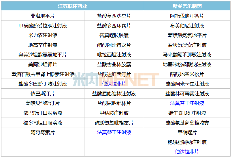 江苏联环药业和新乡常乐制药的已过评产品重合度不高,仅他达拉非片和法莫替丁注射液是双方都有的产品,可见此番收购对江苏联环药业快速扩充产品线成效显著。