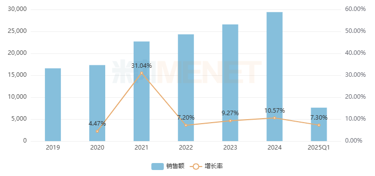 在泌尿系统药物市场,江苏联环药业在2019-2020年排名TOP6集团,2021年升上TOP4集团后一直保持优势。公司的独家产品爱普列特片为国家1类新药,是治疗前列腺良性增生症的有效药物,该产品2020年以来在中国三大终端六大市场的销售额一直保持正增长,潜力巨大。2025年Q1爱普列特片是泌尿系统药物市场TOP3产品。